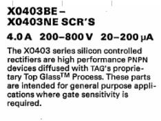 | SCR ST XL0840 0.8A/400V | SCR X0403DE 4A/400V | ||||